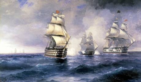 Ο επικεφαλής της παράκτιας φρουράς του Καυκάσου, N. Ραγιέφσκι, του προτείνει να λάβει μέρος στους ελιγμούς της μοίρας στη Μαύρη Θάλασσα. Κατά τη διάρκεια του έτους 1839 πηγαίνει τρεις φορές στη θάλασσα για να παρακολουθήσει και να μελετήσει το θέαμα και παίρνει μέρος σε στρατιωτικές ασκήσεις στις ακτές της Κριμαίας, όπου και συναντιέται με τους ναυάρχους Μιχαήλ Λαζάρεφ, Πάβελ Ναχίμοφ και ο Βλαντιμίρ Κορνίλοφ, με τους οποίους διατηρεί φιλικές σχέσεις μέχρι το τέλος της ζωής του. Οι ναυτικές αυτές ασκήσεις τον εμπνέουν για μια σειρά έργων που απεικονίζουν τις ναυμαχίες και είναι τόσο εντυπωσιακές αλλά και τόσο πλήρεις των ακριβών λεπτομερειών που μπορούν να θεωρηθούν απεικονίσεις μιας πραγματικής ναυτικής τακτικής επίθεσης.