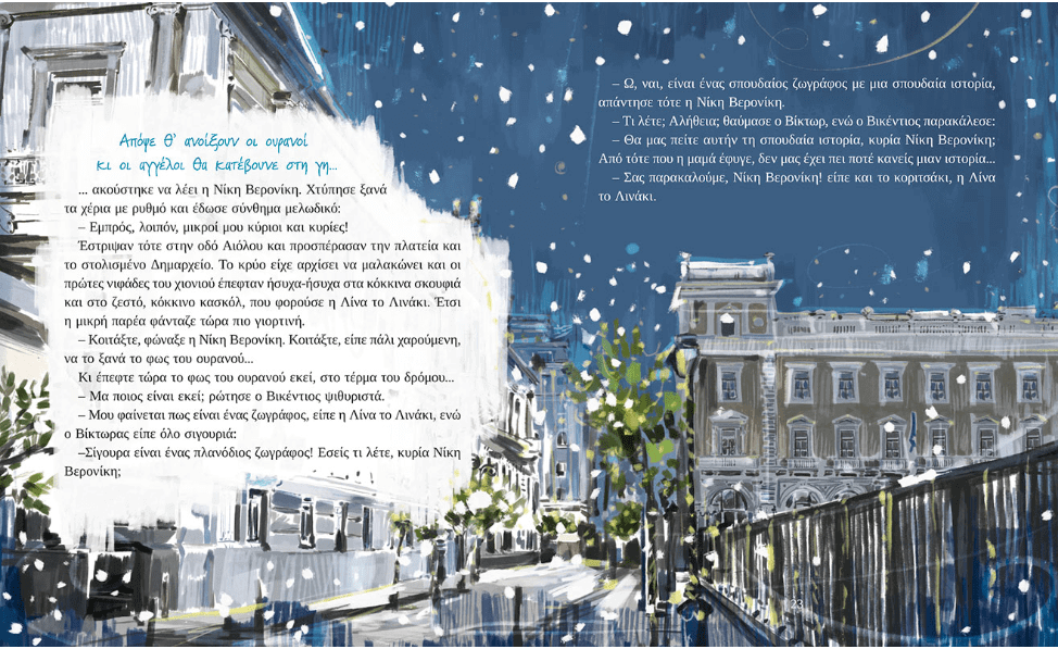 Τι μπορεί να φέρει ζεστασιά μέσα στο κρύο; Τι μπορεί να νικήσει τα χρόνια που περνούν; Και πού βρίσκονται οι άγγελοι, που δοξολογούν τη Γέννηση του Χριστού; Ας αφήσουμε την τρυφερή γραφή της Τίνας Βλασταράκου να μας λύσει τόσες και τόσες απορίες…