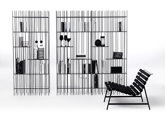 Η βιβλιοθήκη Metrica είναι μια βιβλιοθήκη τοίχου κατασκευασμένη από σιδερένιες βέργες, τιτανίου με πράσινα ράφια από γυαλί ή γυαλισμένου σιδήρου bronze με γυάλινα ράφια.