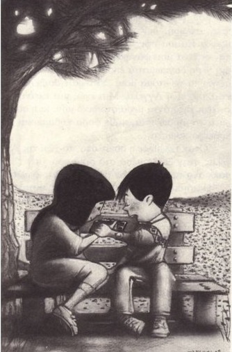 «Γέμισε λάμψη και ομορφιά η αποθήκη! Νόμιζα ότι ο γλύπτης μόλις είχε παρατήσει τα εργαλεία του, τόσο απείραχτο και ολοζώντανο ήταν το άγαλμα. Δεν φαινόταν στην ηλικία παραπάνω από την Αγγέλα. Το άγαλμα πατούσε σε μια τετράγωνη βάση, ίσα ίσα χωρούσε τα κεφαλαία γράμματα που έγραφαν: ΠΕΡΣΕΦΟΝΗ. Το ένα πόδι ήταν μόλις λυγισμένο, τα χέρια απλωμένα μπροστά σα να ήθελε κάτι να πιάσει, κάτι που της ξέφευγε. Τα μαλλιά της, κοντά και σγουρά, τα συγκρατούσε μια κορδέλα, το φουστάνι πάνω από τα γόνατα, όλο σούρες. Εκείνο όμως που με μάγεψε ήταν το βλέμμα της. Όπου κι αν στεκόμουν, νόμιζα ότι με παρακολουθούσε…»