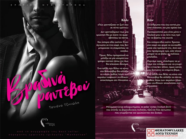 Δύο καινούργια επαγγελματικά όνειρα και στόχοι, δύο άνθρωποι συγκεντρωμένοι στις καριέρες τους, πολλά βραδινά τηλεφωνήματα και μια πολική δίνη. Μια συνταγή για επιτυχία; Φυσικά. Γιατί διαβάζεις Τατιάνα Τζινιώλη. Ξέρεις ότι θα ταξιδέψει συναισθήματα και μυαλό σε πόλεις και έρωτες που σε καλούν να τους ανακαλύψεις.